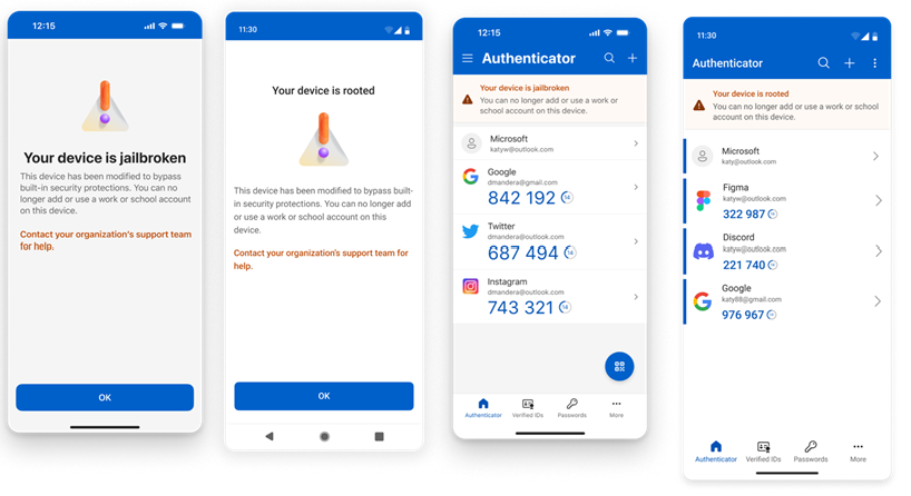 Jailbroken iOS devices and rooted Android devices bypass built-in security protections, making them more vulnerable to malware, unauthorized access, and credential theft. By detecting these modifications, Microsoft Authenticator will help ensure that Entra ID credentials remain secure and are not exposed on compromised devices.